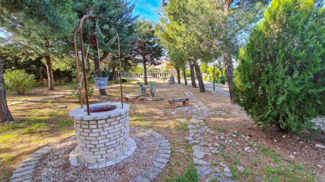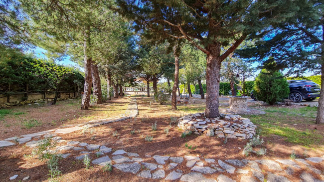 Giardino ben curato con verde ultradecennale e vari alberi di frutteto con impianto d'irrigazione, forno e barbecue.