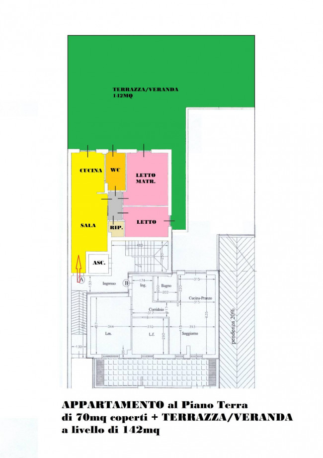 • Zona giorno con Sala a vista ambiente unico con parete attrezzata per la cucina e uscita sull'ampia Veranda posteriore di 142mq;