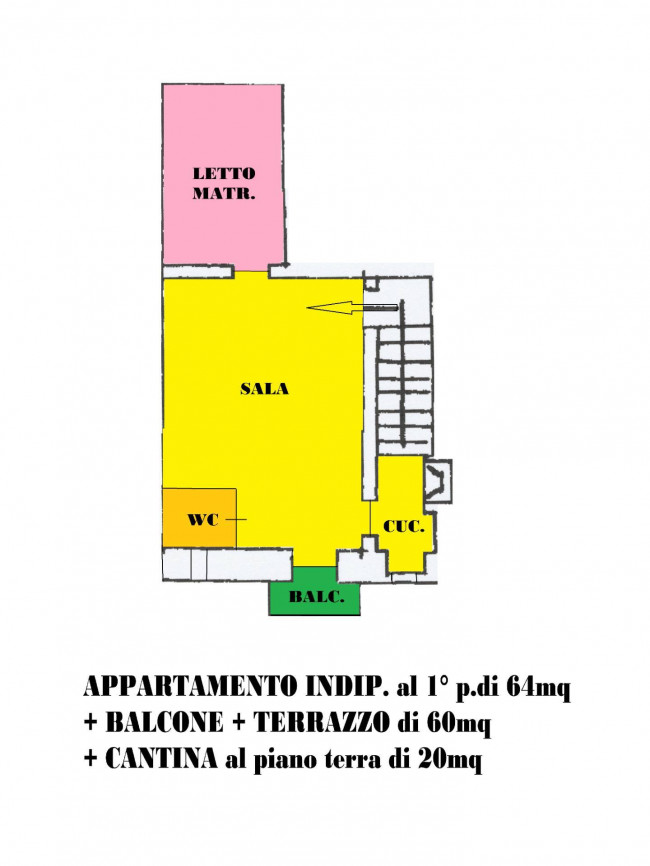 L'immobile è precisamente composto da: Ingresso Sala a vista con uscita sul Balcone, camera da letto matrimoniale, cucinino e bagno con doccia.